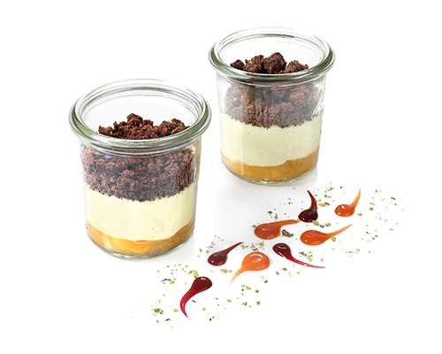 Sweet Vanilla feat. Apricot vegane Vanillemousse auf Aprikosenragout, Im hohen Weckglas.