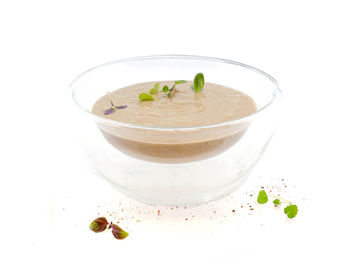 Vegane Steinpilzcremesuppe mit einem Hauch Knoblauch.